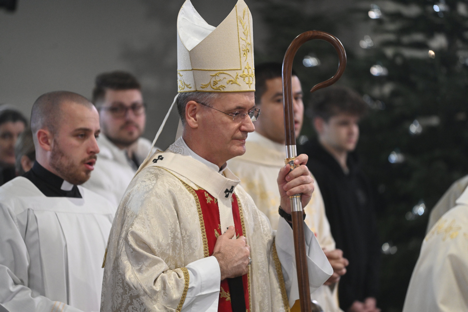 “Božić nas usmjerava prema čovjeku na rubu: prema siromašnima, bolesnima, starijima, napuštenima, mladima koji priželjkuju bolju budućnost u vlastitoj domovini. Pravedno društvo ne gradi se riječima, nego poštenjem, odgovornošću, brigom za najslabije. Tamo gdje se čovjeku oduzima dostojanstvo, tamo se gubi i mir. A gdje se čovjek podiže, ondje raste i nada”, poručio je nadbiskup pa nastavio.