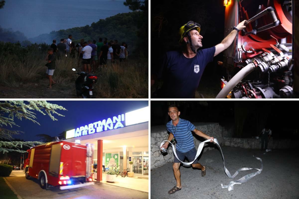 Trenutno požarište je između hotela Medena i kampa u Seget Vranjici, gdje gori borova šuma.