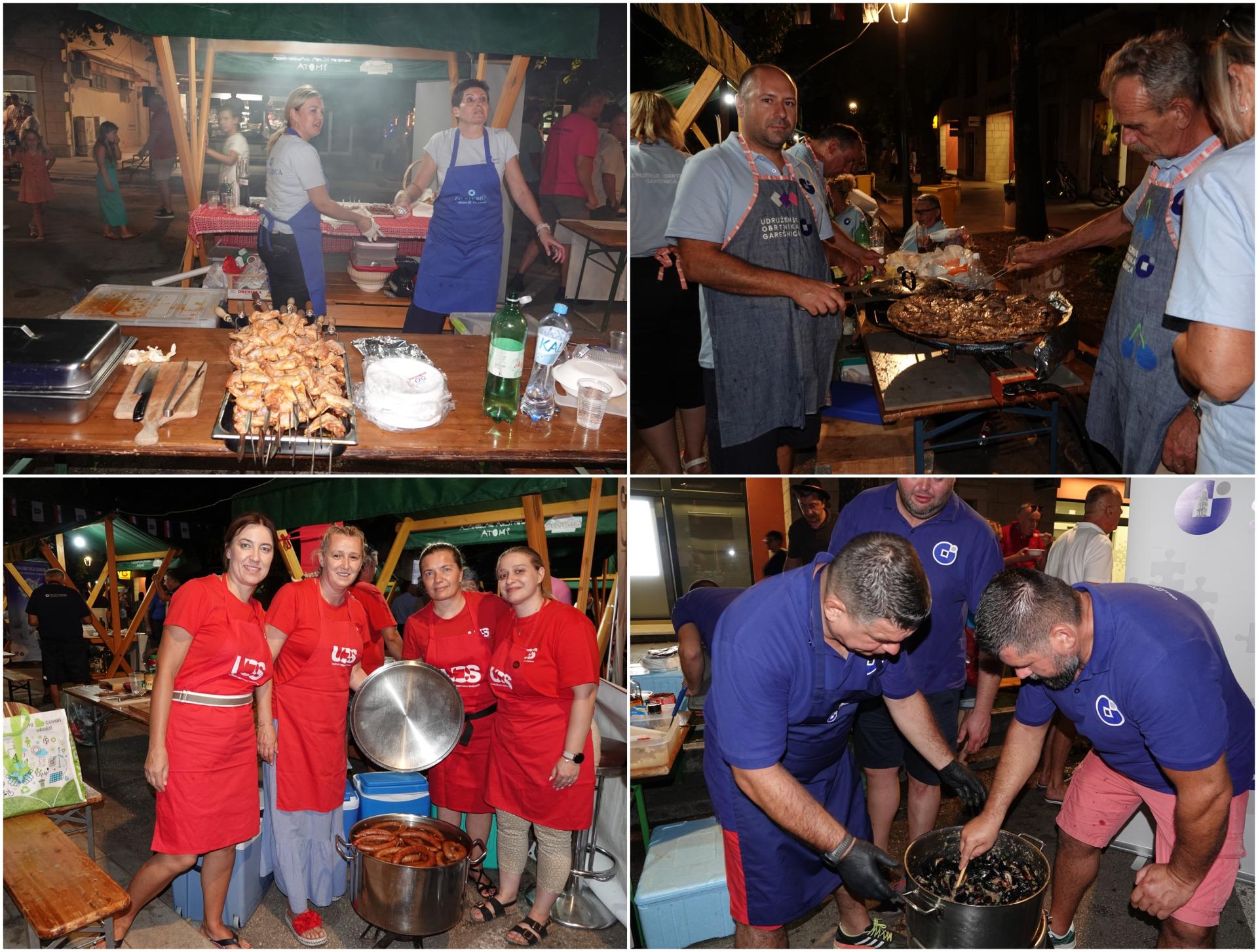 Kaštelani su oduševili crnim rižotom, a Splićani rižotom od kozica i palamidom na žaru. Iz Garešnice su ponudili roštilj na njihov način, a Požega i Virovitica kobasice na slavonski način.