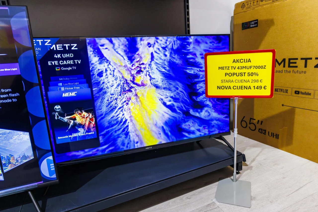U ponudi se sada nalazi čak šest modela ultra tankih smart LED televizora dijagonale od 43 do 75 inča (109 do 190 cm) prestižnog njemačkog brenda Metz. Svi su televizori opremljeni 4K rezolucijom, HDR-om i HDMI priključcima najnovije generacije, imaju predinstalirane aplikacije poput Netflixa, Prime Videa i YouTubea, a posebno se ističe mogućnost glasovnog upravljanja.