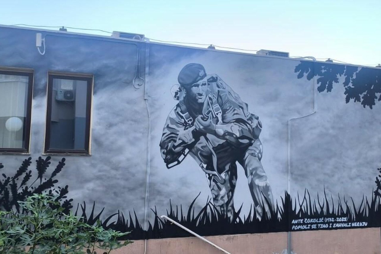 Na splitskim Blatinama je danas otvoren mural u spomen na nedavno preminulog junaka Domovinskog rata, pripadnika 4. gardijske brigade “Pauci”, brigadira Antu Čokolića.