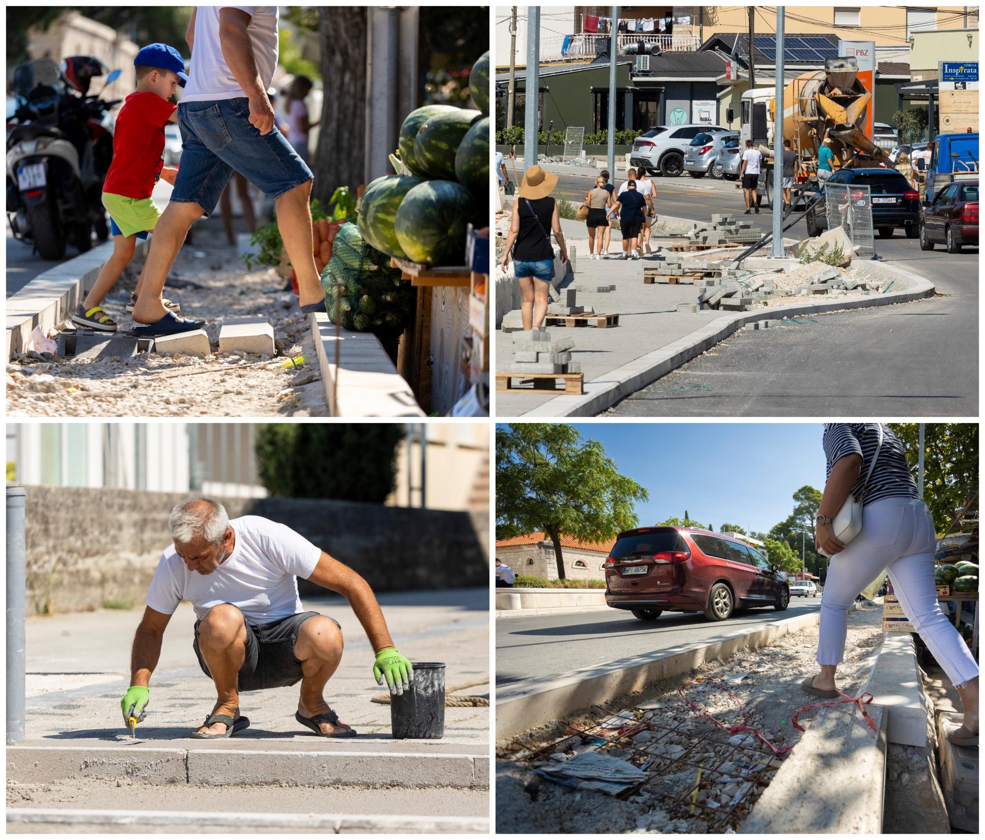 “Katastrofa! Ovo nema nigdi šta se tu u Trogiru radi. Mjerodavni govore da krivca nema, ali ima i postoji. U startu je sve bilo krivo! Da su ovi šta rade plaćali odmah penale, požurili bi bili odavno. Ja bi sad više volija da naiđe majka s kolicima pa da je slikate nego da mi se Gospe ukaže”, ogorčen je Vojko Pavković, dugogodišnji prodavač s trogirske tržnice, dok nam pokazuje nedovršeni nogostup tik do štandova.
