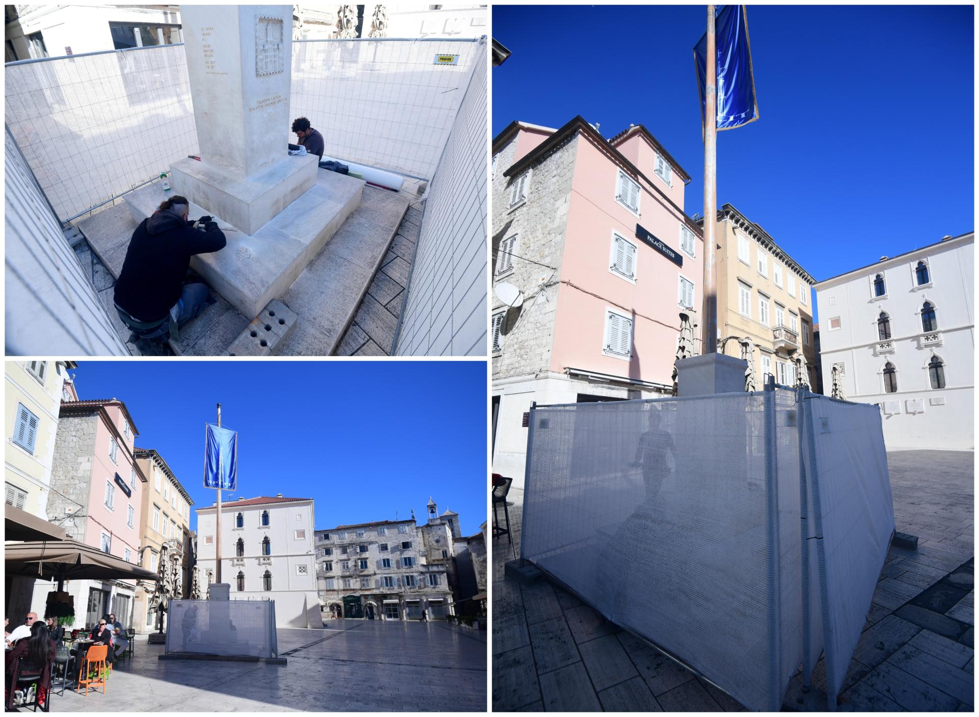 Premda je mnogima zvučalo nevjerojatno, splitska gradska vlast dala je nalog da se ukloni kameni štandarac s Pjace! Očito, jer u petak ujutro pod kamenim stupom koji nosi gradsku zastavu pojavila su se dva radnika koji tuku fuge, a spomenik je zastrt ogradom i mrežom.