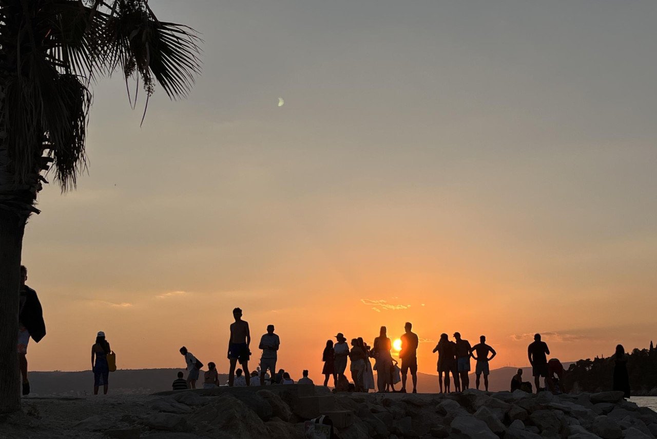 A jedan se u toj ulozi sam nametnuo, i ovaj tekst je zapravo prijedlog nadležnima – prije svega Županiji, budući da ona upravlja plažama, da samo uberu taj plod koji godinama zrije; osmislite i uredite “sunset vidikovac” koji već postoji i s kojeg se prate ti divni trenuci ljetnih dana kad “zlatni sat” okončava zalaskom sunca tamo iza Kaštelanskog zaljeva ili Čiova, ovisi o tome je li ljeto počelo ili završava.