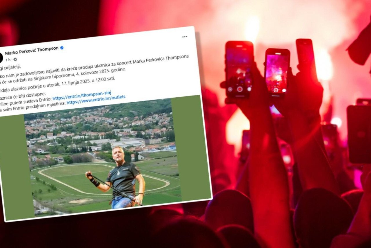 – Dragi prijatelji, veliko nam je zadovoljstvo najaviti da kreće prodaja ulaznica za koncert Marka Perkovića Thompsona koji će se održati na Sinjskom hipodromu, 4. kolovoza 2025. godine. Prodaja ulaznica počinje u utorak, 17. srpnja 2025. u 12:00 sati. Ulaznice će biti dostupne putem online platforme Entrio i svih Entrio prodajnih mjesta – objavio je Thompson na Facebooku.