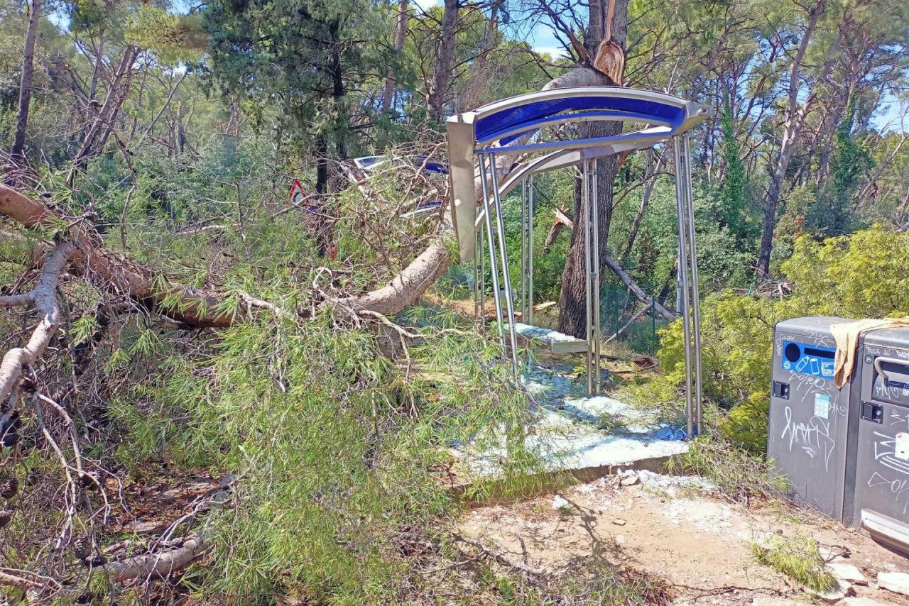 Prema prvim informacijama u naletu, rekli bi “splitskog tornada”, uništeno je preko 200 stabala, a autobusno stajalište na Benama, kao i nogometno igralište sa umjetnom travom, su kompletno ošteteći.