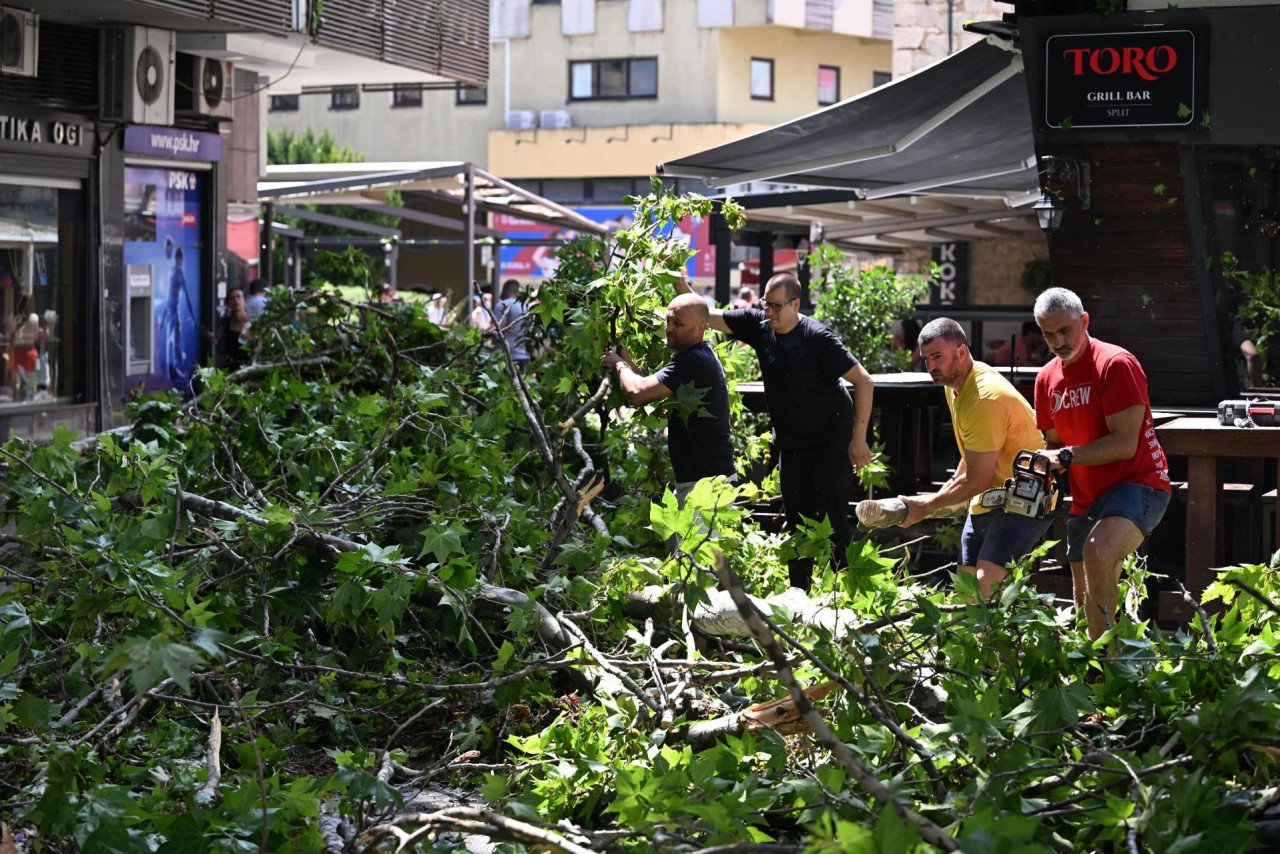Uži centar grada ostalo je nekih sat vremena i bez električne energije, dok su ulica postale – poligon za oborena stabla, krošnje, dijelove tendi i stolica koje su “šetale” niz ulice nošene i vjetrom i bujicama.