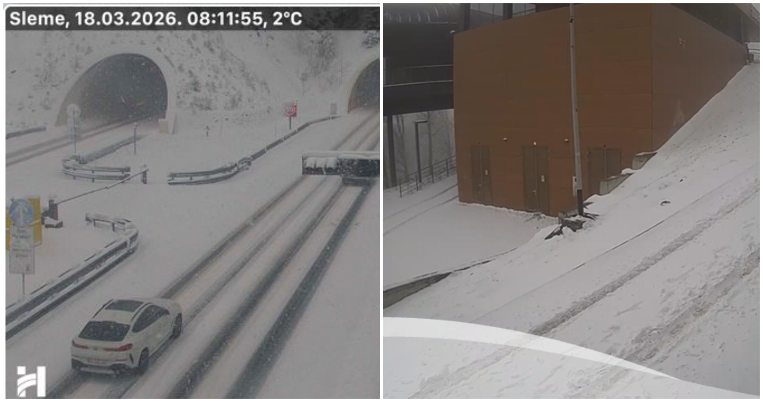 Zima je pokazala zube i podsjetila da je ona još uvijek tu unatoč prekrasnim sunčanim danima u kojima smo uživali. Vrh Medvednice Sljeme se bijeli, baš kao i drugi dijelovi zemlje, zbog čega je Hrvatski autoklub izdao upozorenj na stanje u prometu diljem zemlje, navodeći kako su kolnici mokri i skliski te da su u pojedinim cestama zimski uvjeti.