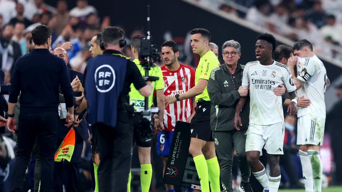 Jer Xabi je ponovno pozvao Viniciusa, strašno kako mu se često događa u posljednje vrijeme: za Brazilca 19 utakmica bez golova, 16 s Madridom i 3 s Brazilom, proziran u obrani i protagonist samo kad se posvađao sa živahnim Cholom. Simeone je u prvom poluvremenu prišao Brazilcu i rekao mu: “Zapamti što ti kažem, Florentino će te otjerati.” Vini se nasmijala. No, kada je napustio stadion u Jeddahu, zasvirao je u zviždaljku, baš kao što se događa na Bernabeuu. A Čolo, stari čistokrvni provokator, pozvao je Vinija i stavio mu prst na uho: “Slušaj, slušaj” misleći na presudu javnosti.