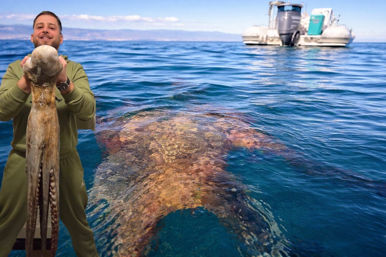 Podvodni ribolovac Ante Klobučar iz Splita jučer je došao na svoju skrovitu poštu i posrećilo mu se. Naletio je na hobotnicu veliku gotovo kao i on sam, a visok je, kaže, 181 cm.