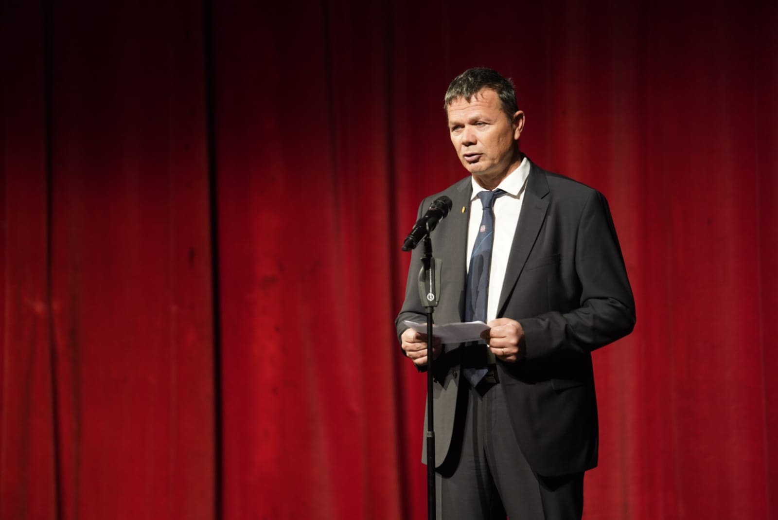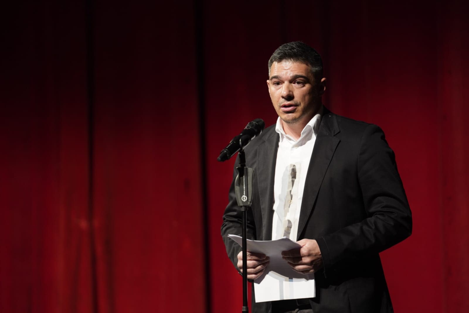 Sa pozornice kazališta govore njegove klupske kolege i prijatelji, predsjednik Nade Branimir Kovačić i drugi.