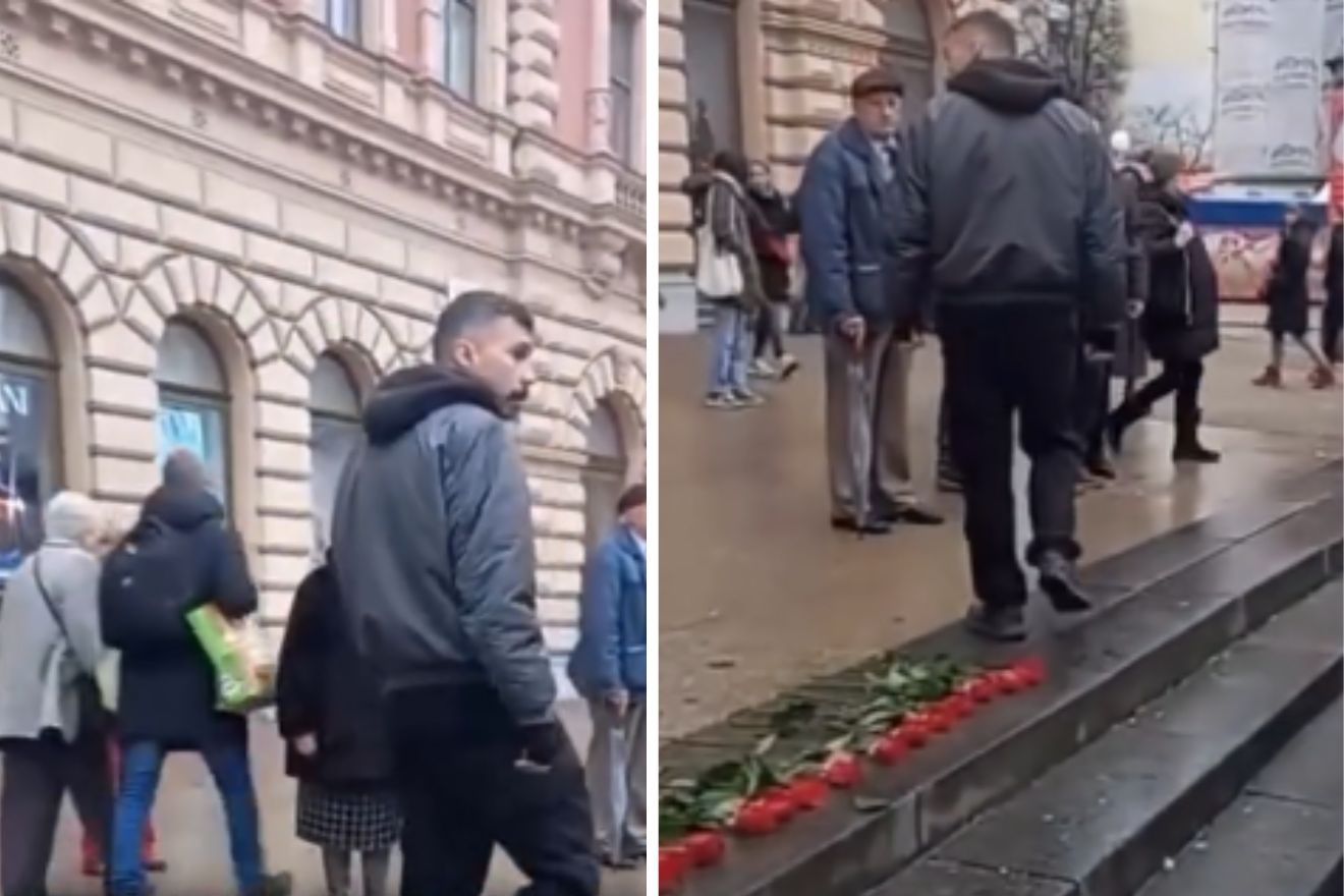 Nakon što je prvi put zakoračio preko svih ruža položenih u znak sjećanja na ubijene žene, prišla mu je prolaznica i, prema onome što se čuje na snimci, upozorila na njegovo ponašanje, ali kako nitko od prisutnih policajaca nije ništa poduzeo, muškarac je ponovno hladnokrvno pregazio ruže i potom se vratio među ostale molitelje.