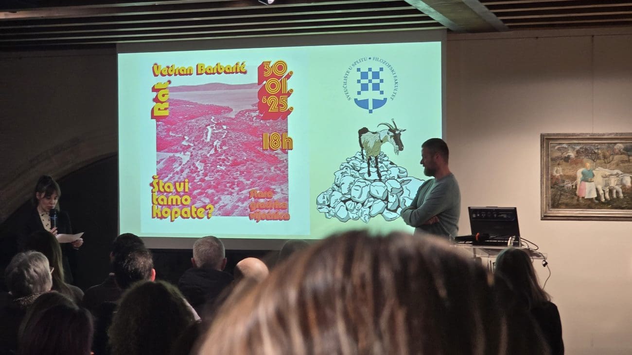 Dr. sc. Vedran Barbarić, izvanredni profesor na Filozofskom fakultetu Sveučilišta u Splitu i voditelj istraživanja gradine Rat, kroz predavanje je pružio detaljan uvid u istraživačke metode i rezultate, ali i značaj ovog lokaliteta za razumijevanje dugog kontinuiteta naseljenosti na otoku Braču.