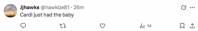 Nije ga mogla dobiti, ali to se dogodilo nekoliko trenutaka nakon što je djevojka Cardi B objavila rođenje njihovog sina
