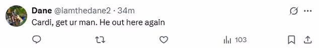 Drugi je objavio: ‘Cardi, uhvati svog čovjeka. Opet ju je izbacio’.
