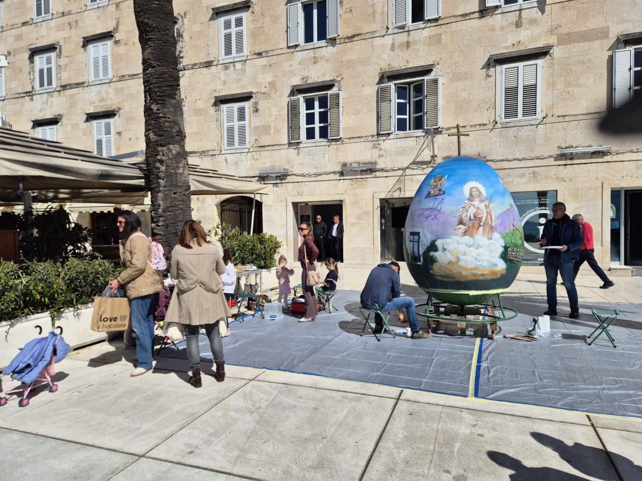 I ove godine Braniteljska udruga BLU oslikava veliko jaje na Rivi uoči Uskrsa. Tri metra visoka pisanica danas je stigla u centar grada, nakon što se na njoj radilo desetak dana u prostorijama udruge.