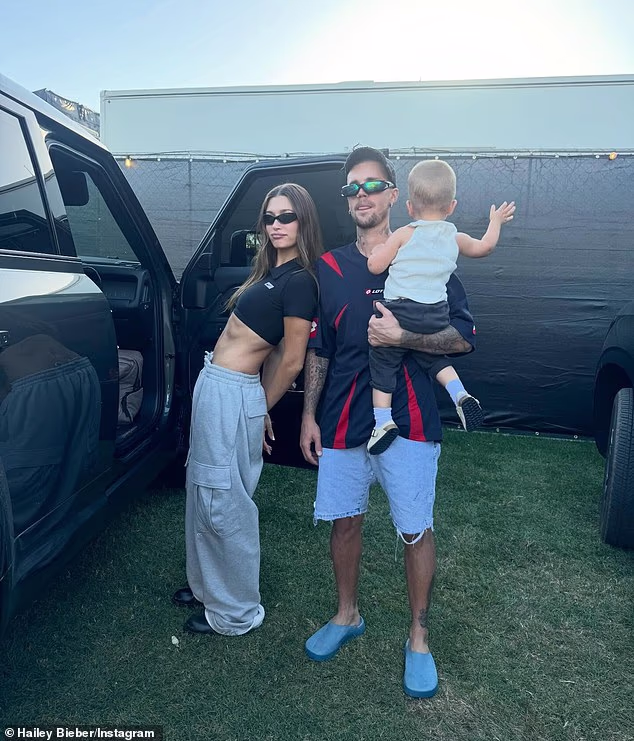 Hailey Bieber povela je sa sobom svog sina Jacka Bluesa Biebera da gleda svog supruga Justina Biebera na probi za njegov glavni set na Coachelli.