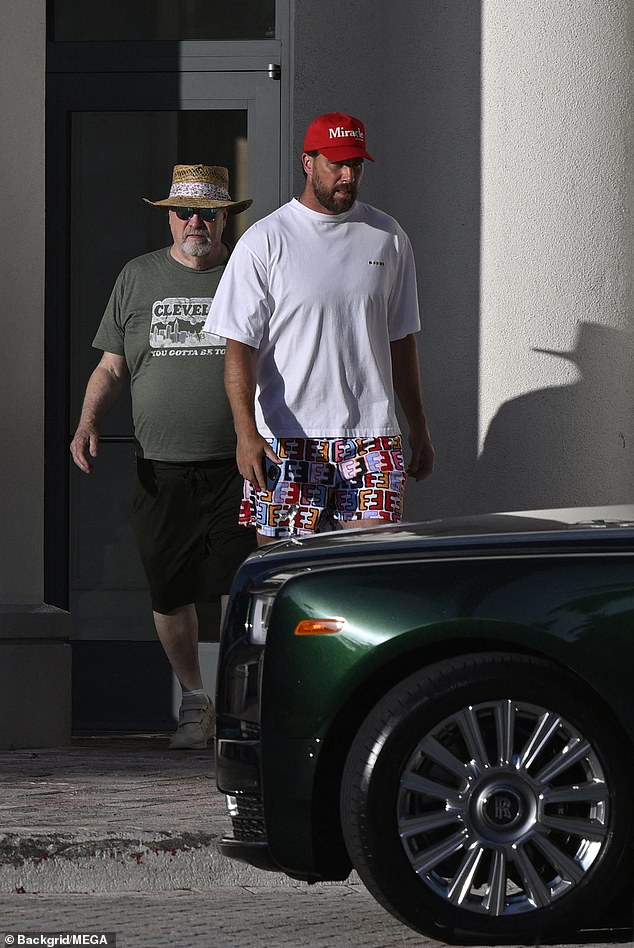 I, prije datuma večere u petak, Kelce je uživao u neko vrijeme oca i sina sa svojim ocem Ed-om u blizini svog skrovišta Boca Raton-koji dolazi u kompletu sa šest spavaćih soba, bazenom vodopada, spa, kućnim kinima i privatnim pristaništem.