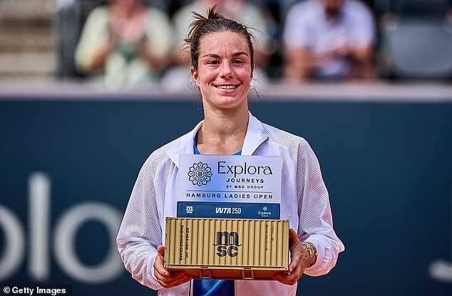 Objavljeni trofej s otpremnim sandukom Lois Boisson nakon osvajanja šokiranih navijača Hamburg Open Open