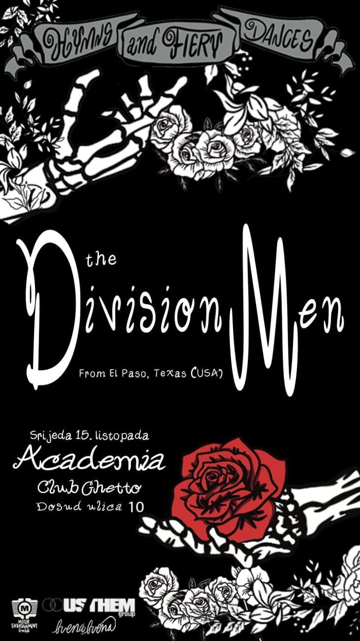 THE DIVISION MEN je akustični duo iz El Pasa u Texasu, USA. Bend je upravo dovršio svoj četvrti studijski album, koji će uskoro biti objavljen za izdavačku kuću Motor Music iz Berlina. Nastup u Academia Club Ghetto u Splitu dio je tromjesečne europske turneje na kojoj promoviraju novi album.