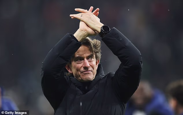Thomas Frank pozdravio je svoje igrače Tottenhama nakon što su pobijedili Eintracht Frankfurt i izborili mjesto u šesnaestini finala Lige prvaka.