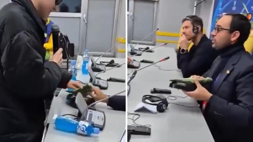Nakon utakmice Lige prvaka između Kairata Almatyja i Real Madrida, koji je za španjolsku momčad završio 5-0 zahvaljujući trojici Mbappé, konferencija za novinare animiranu s bizarnom zavjesom: Kazahstanski novinar daje Xabi Alonso gumenu ribu koja … govori! “Hala Madrid”, kaže igračka, dok Blancos komunikacijski menadžer pokušava sakriti objekt ispod stola. U stvari, međutim, čini se da je Xabi volio: gumena riba našla je mjesto u pravom autobusu.