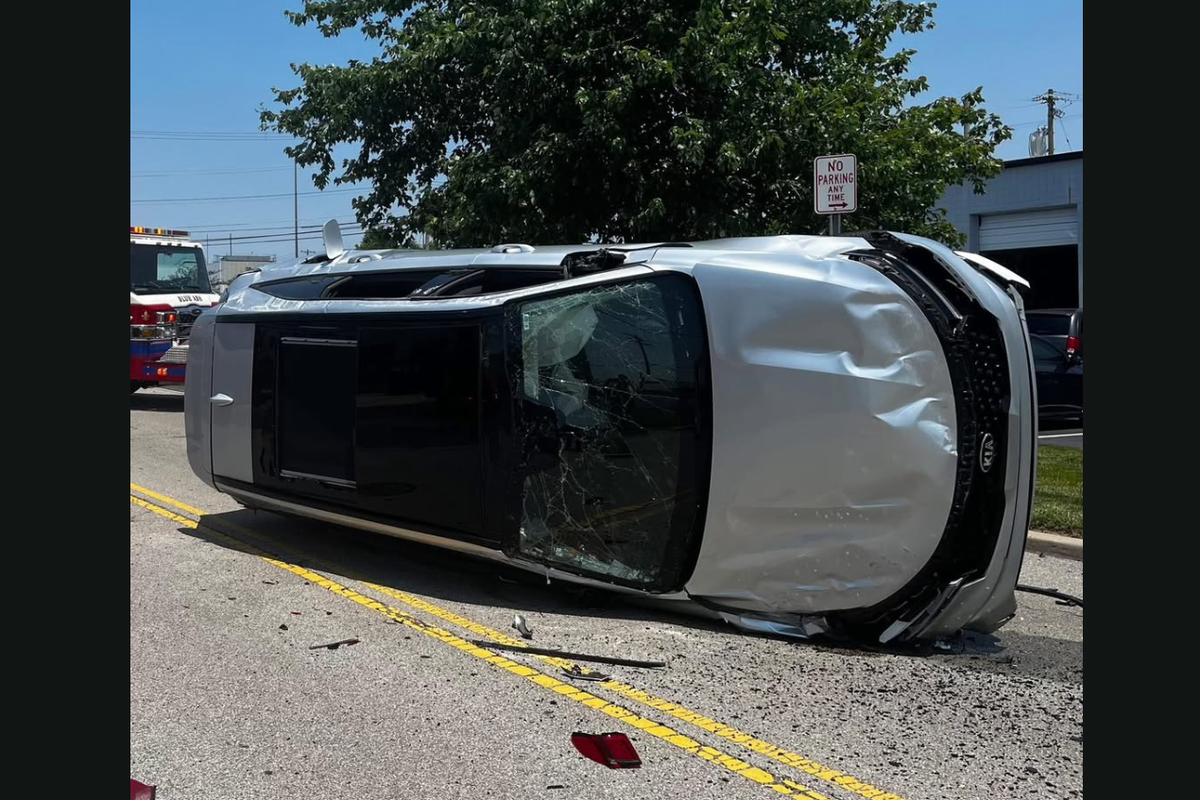 Post sadrži fotografiju oštećenog automobila prebačenog na bok. Srećom, u sudaru nitko nije ozlijeđen.