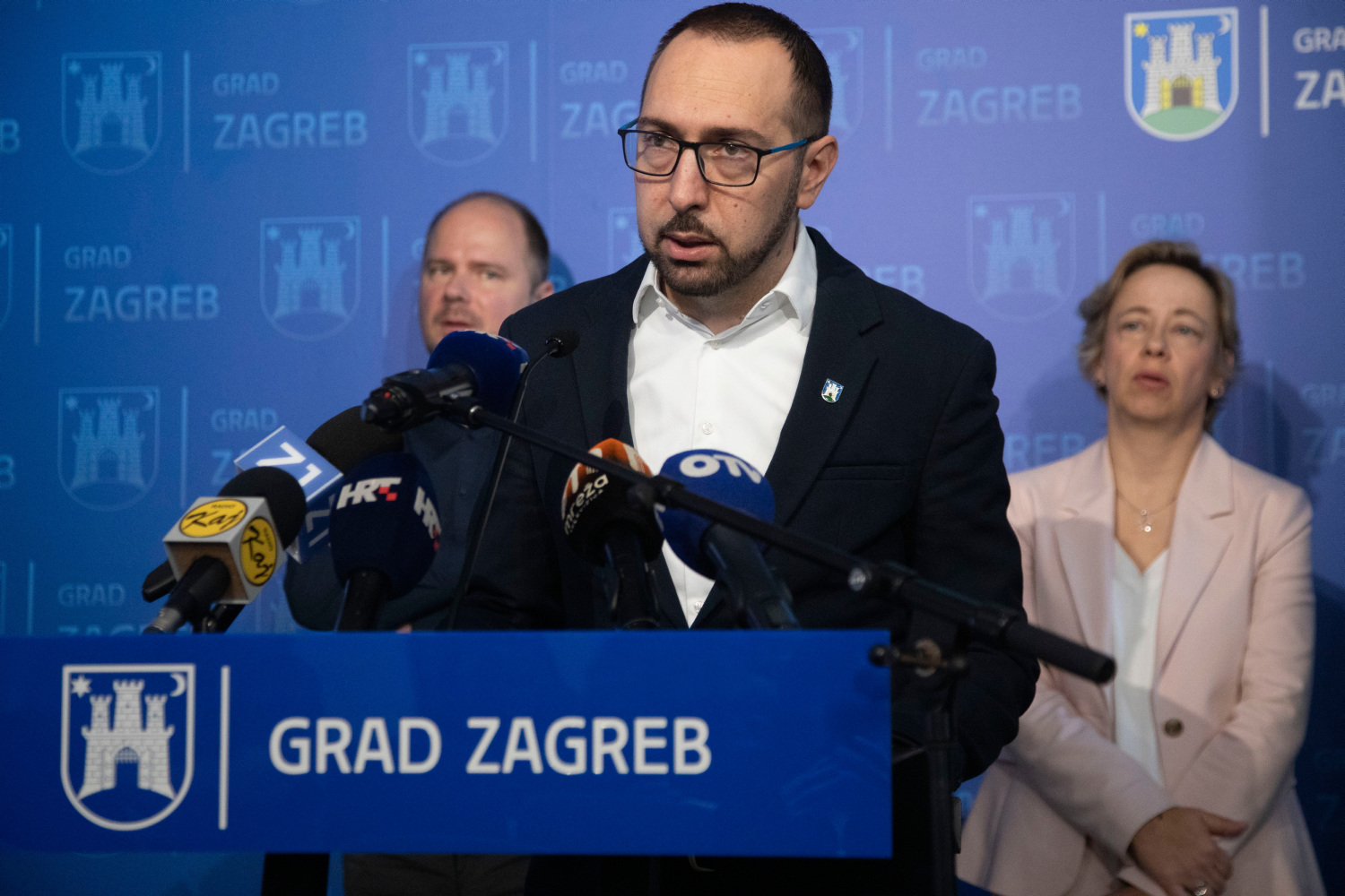 Zatim je Tomašević, zajedno sa svojim zamjenicima Danijelom Dolenec i Lukom Korlaetom, započeo s redovnom konferencijom za medije i odgovaranjem na pitanja novinara vezano uz aktualne teme.