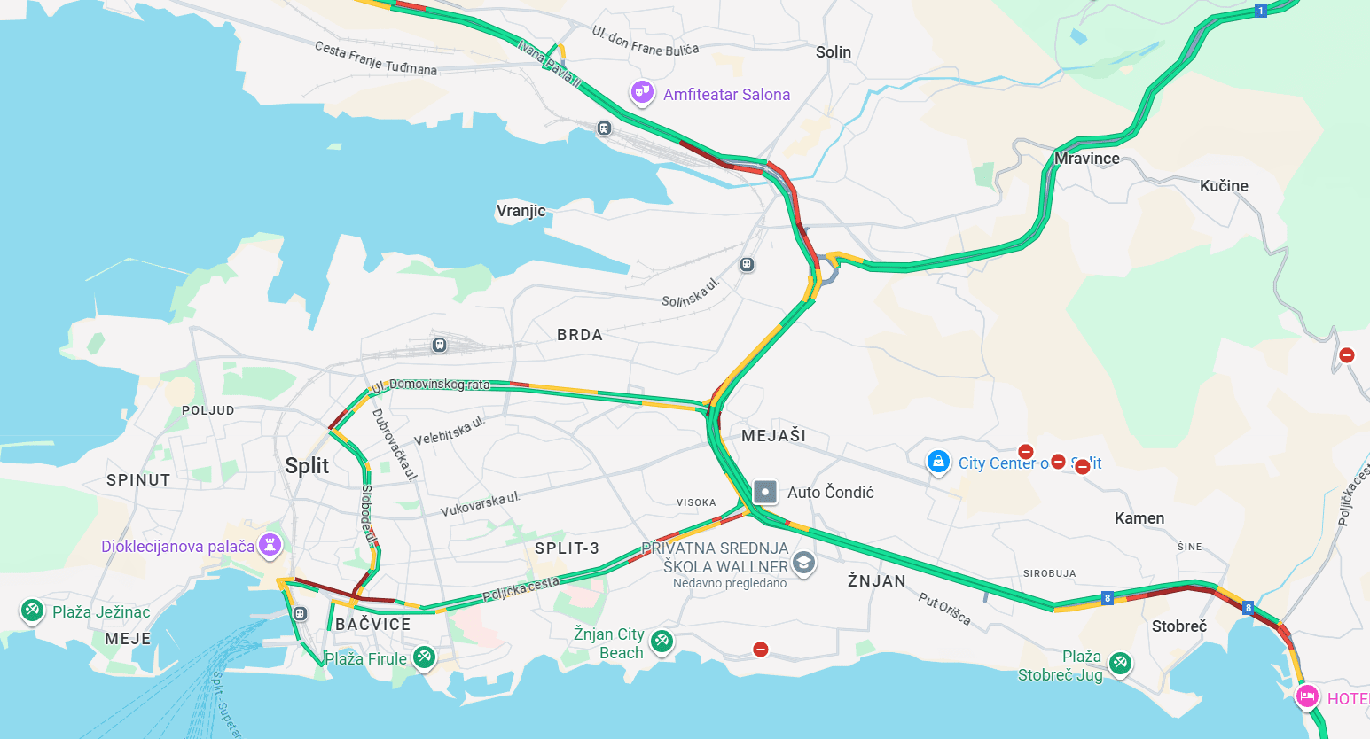 Vozači u Splitu danas se, kao i inače, suočavaju s očekivanim gužvama na nekoliko ključnih prometnih pravaca.
