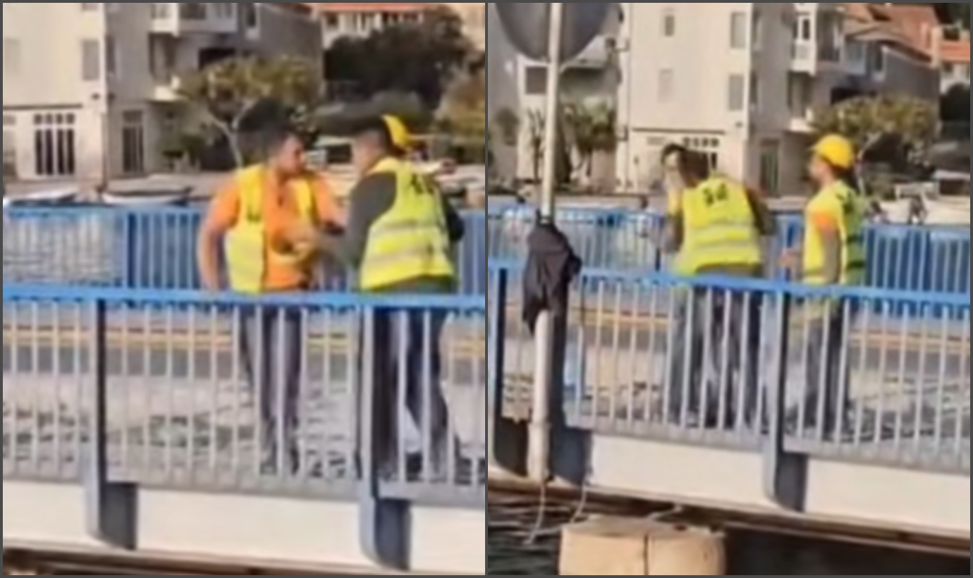 Na objavljenoj snimci vidi se verbalni i fizički sukob dvojice muškaraca u žutim prslucima. U jednom trenutku jedan od njih uzima zaštitnu kacigu i udara drugoga po glavi, dok treći muškarac pokušava razdvojiti sukobljene strane.