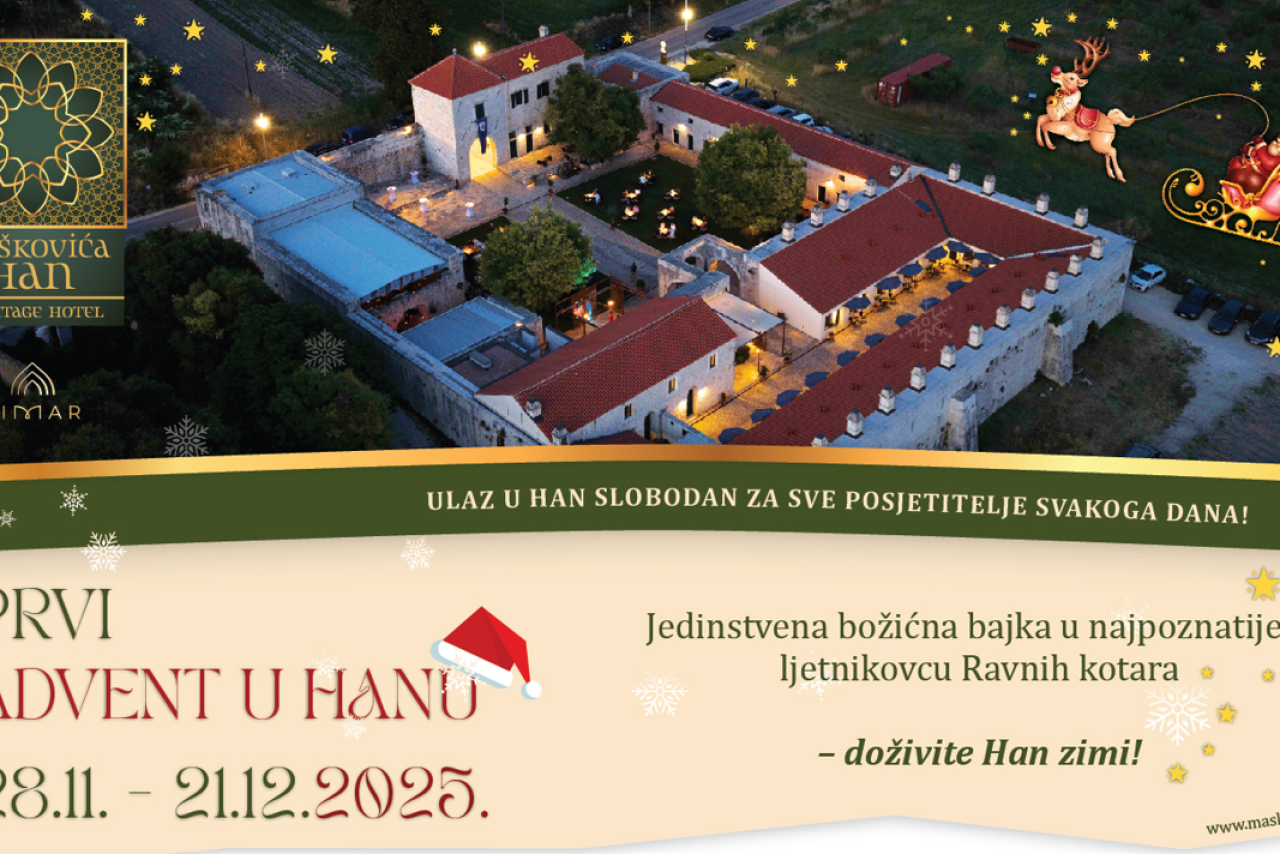 U jedinstvenom ambijentu Maškovića hana u Vrani, od 28. studenoga do 21. prosinca, održava se prvi „Advent u Hanu“ – boutique božićni market koji spaja mirise orijenta, domaće okuse i toplo blagdansko ozračje za sve generacije.
