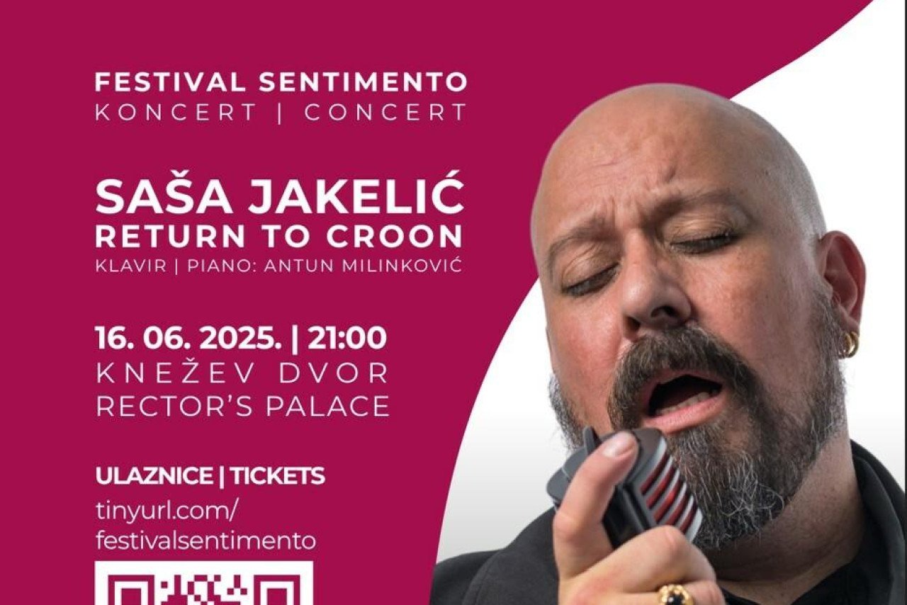 Na donatorskom koncertu „Return to Croon“, u sklopu Festivala Sentimento, Saša Jakelić izvest će najljepše bezvremenske klasike glazbenih velikana poput Cohena, Orbisona, Aznavoura, Dedića i Denvera, uz pratnju pijanista Antuna Milinkovića. Ovim jedinstvenim glazbenim repertoarom, ispunjenim sjećanjima, emocijama i osobnim glazbenim autorskim tragom, Saša Jakelić, čiji glas odlikuje topla i prepoznatljiva boja, vodi publiku kroz glazbene uspomene te na poseban način obilježava 30 godina umjetničkog djelovanja. Poseban trenutak večeri bit će izvedba novonastalog glazbenog djela koje se tijekom ovogodišnjeg festivala stvaralo u ustanovama socijalne skrbi, te nastup inkluzivnog zbora Unison koji povezuje naše građane i korisnike ustanova.