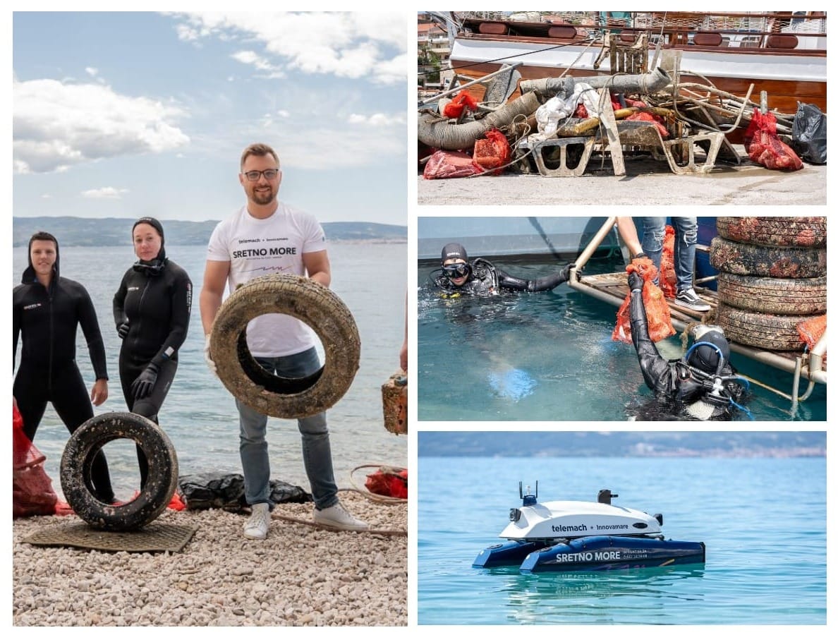 KRILO JESENICE – U sklopu velike akcije čišćenja podmorja u Krilu Jesenice, preko 40 ronioca izvuklo je tri tone otpada uz pomoć prvog hrvatskog autonomnog plovila i Telemachove 5G mreže. Akciju su podržali Općina Dugi Rat, Turistička zajednica općine Dugi Rat te učenici OŠ Jesenice koji su doprinos dali s obale, čišćenjem plaže i luke Krilo kao i dječjeg parka. Održana akcija dio je Telemachove inicijative za čišći Jadran “Sretno more” koju je kompanija pokrenula u suradnji s udrugom Digitalni inovacijski HUB Innovamare i Institutom Ruđer Bošković.