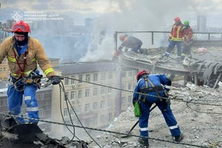 U slikama: Spasilački radnici prisustvuju mjestu raketnog štrajka u Kijevu