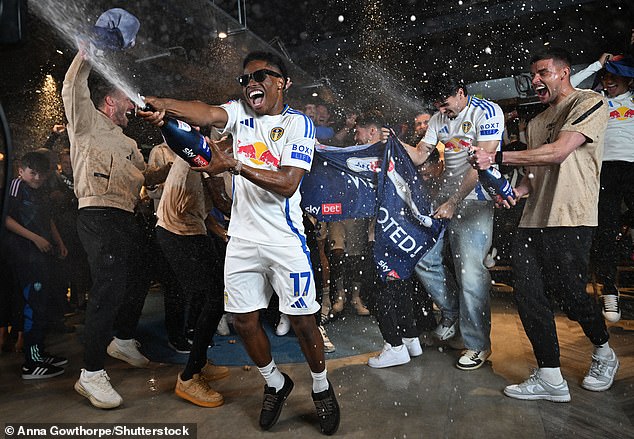 Largie Ramazani bio je među Leedsovim igračima u gužvi proslava nakon što je promocija potvrđena