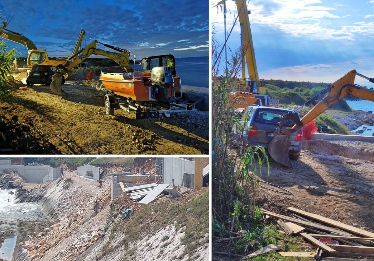 ALBERI/SAVUDRIJA – Gotovo čitav dan trajala je bespoštedna akcija zaštite privatnih posjeda u turističkom naselju Alberi u Savudrijskoj vali gdje se već mjesecima provodi projekt uzurpacije pomorskog dobra na stjenovitoj obali za gradnju gradske šetnice, u duljini od 500 metra te betonizaciju plaže u koncesiji novog turističkog resorta Petram.
