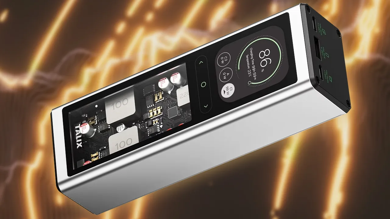 Ako niste čuli za “Talix”, ne brinite. Talix je tvrtka koju podržava Lenovo i ovaj power bank je identičan Lenovo Thinkplus Fluxo power banku u gotovo svim pogledima osim po imenu. Ovo je power bank u stilu bombon bara s prilično glatkim prozorom koji prikazuje unutarnje strujne krugove. Postoje ukupno tri izlaza: jedan 140W USB-C priključak, jedan 65W USB-C priključak i 30W USB-A priključak.