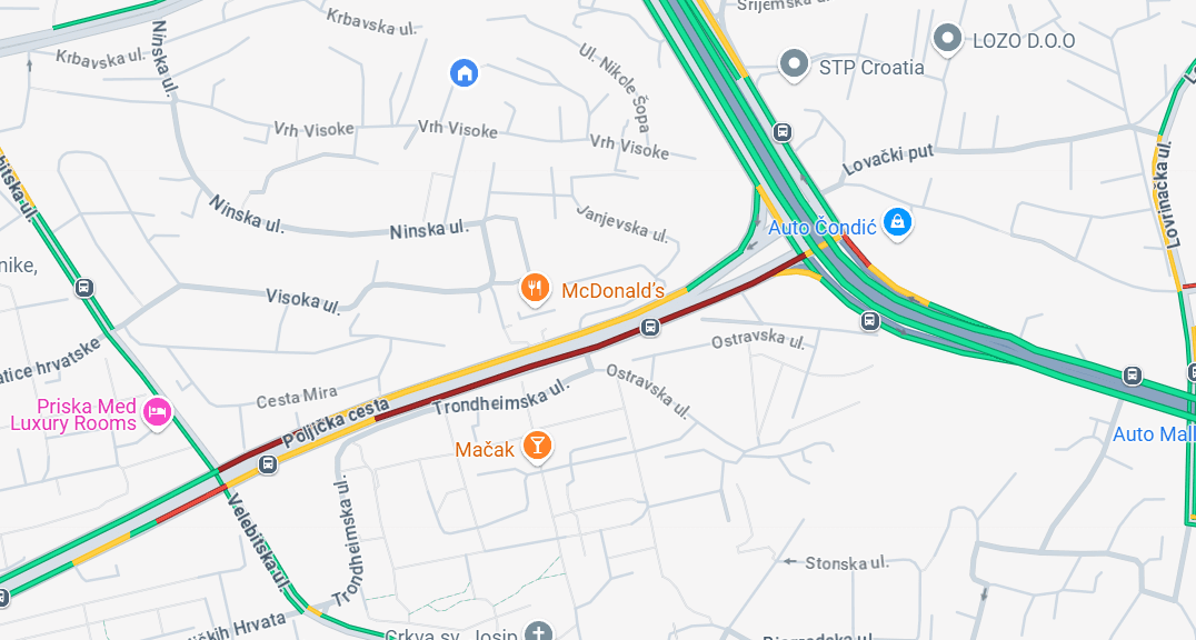 Danas oko 13:30 sati na Poljičkoj cesti u Splitu, u smjeru centra grada, nastala je veća prometna gužva. Prema dojavama čitatelja, vožnja od Mertojaka prema Splitu 3 traje znatno duže nego inače, a zastoj se proteže duž većeg dijela prometnice.