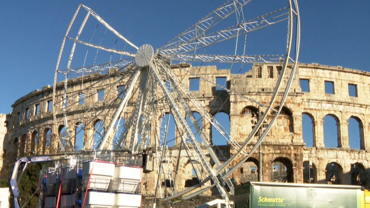Veliki panoramski kotač u Puli premješten pod Arenu – Razlog: “Kritike javnosti da neće izdržati udare bure!”