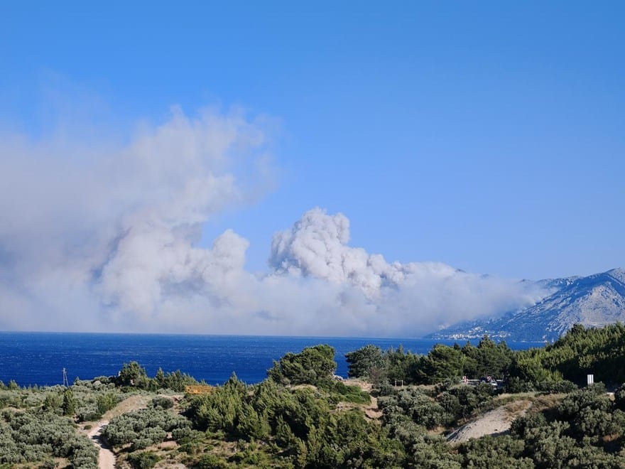 Na terenu su vatrogasne ekipe, a stanje se brzo mijenja zbog vjetra i nepristupačnog terena. Stanovnici pokušavaju zaštititi domove, dok turisti, vidno uznemireni, napuštaju mjesto.