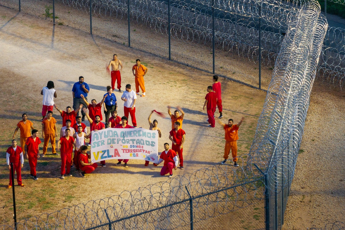 Druga slika bilježi grupu koja drži znak koji na španjolskom glasi: “Pomoć, želimo biti deportirani. Nismo teroristi.” Znak kaže “VZLA”, referenca na Venezuelu i sugerira da se mole s vlastima da izbjegavaju zatvor u Centru za zatočenje terorizma El Salvadora, ili Cecot, koje su grupe za ljudska prava označena kao “tropski gulag” i koncentracijski logor.