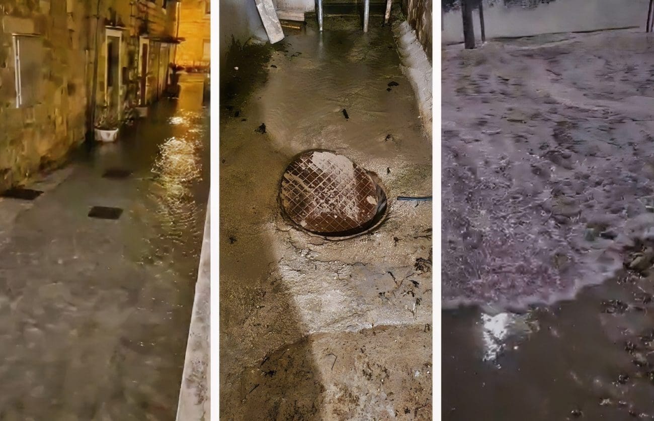 VIDEO Besana noć za stanovnike Kaštela: Poplavila riva, voda dolazi do automobila. “Ovakvo stanje je nepodnošljivo. Godinama govorimo o prodiranju mora u naše kuće”