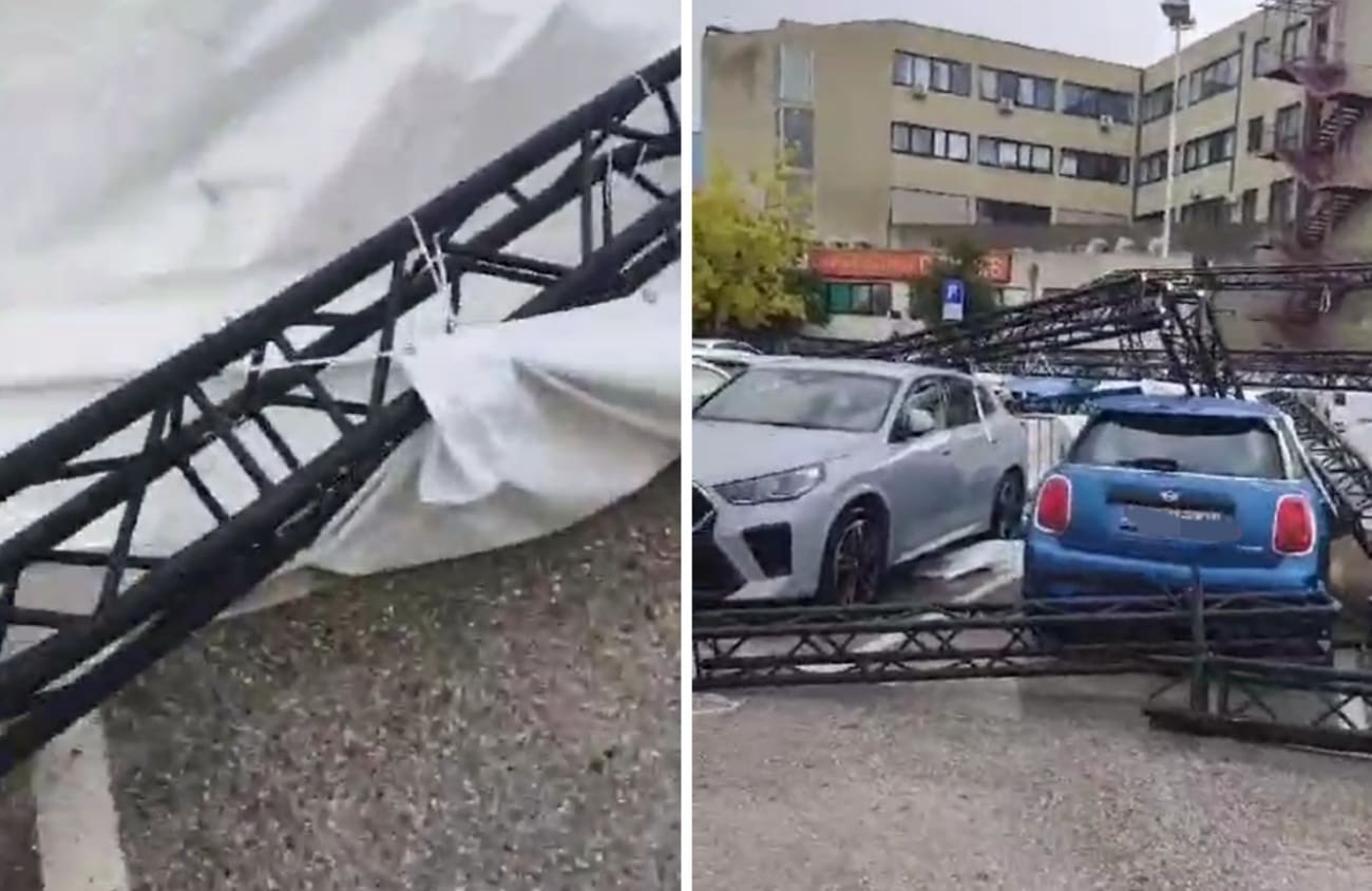 Vjetar je čupao stabla, a ispred TC Joker polomljena je čelična konstrukcija koja je pala na parkirana auta. Materijalna šteta je ogromna. Građani nam pojašnjavaju kako je to dio konstrukcije za Ultru.