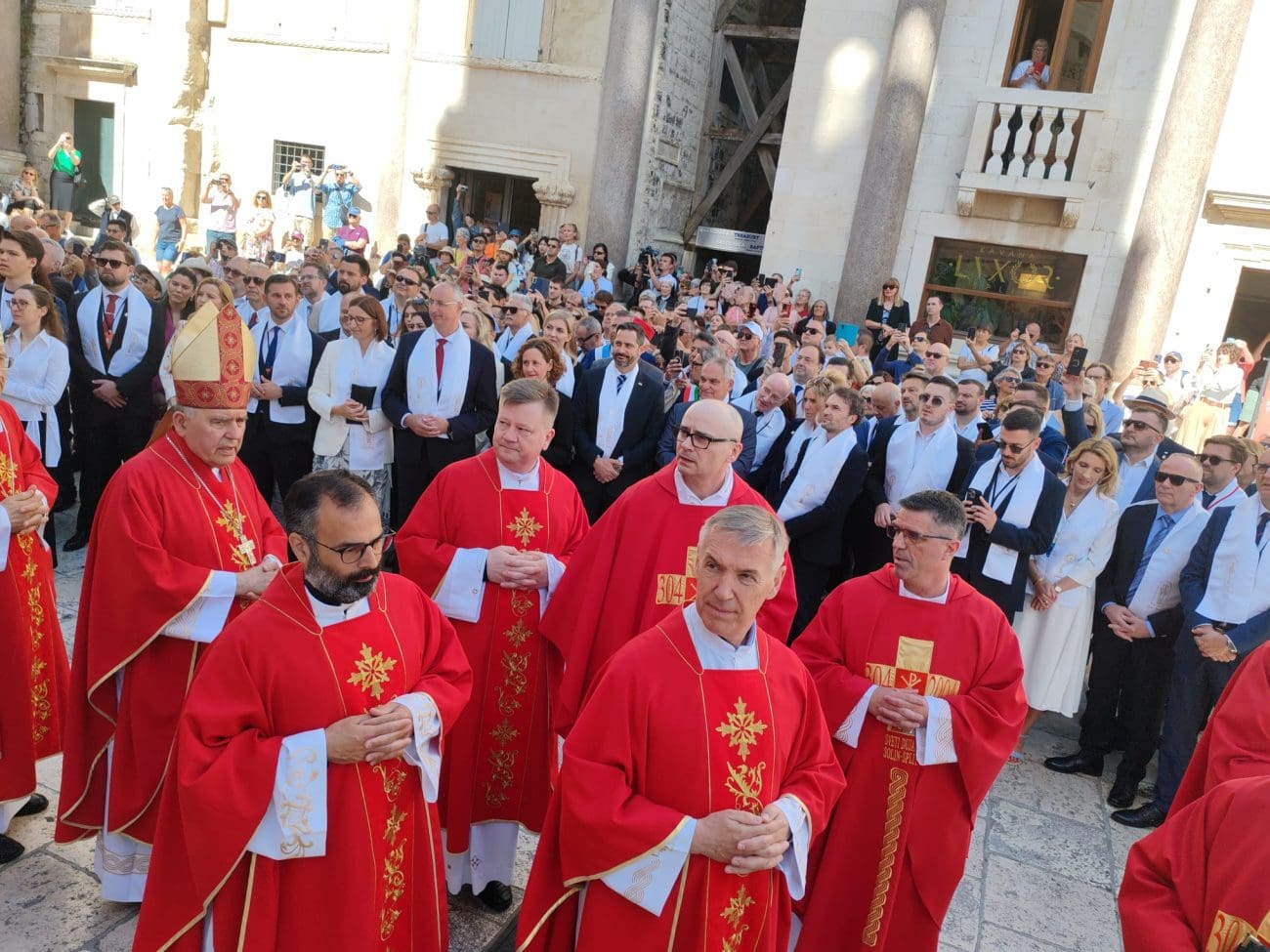 Ispred splitske katedrale okupili su se brojni visoki uzvanici, a stigao je i veliki broj građana. U samom centru grada, ali i na splitskoj Rivi velika je gužva i brojni su građani odlučili sudjelovati u procesiji. Gužva je na Rivi, u Marmontovoj ulici, Prokurativama, Peristilu…