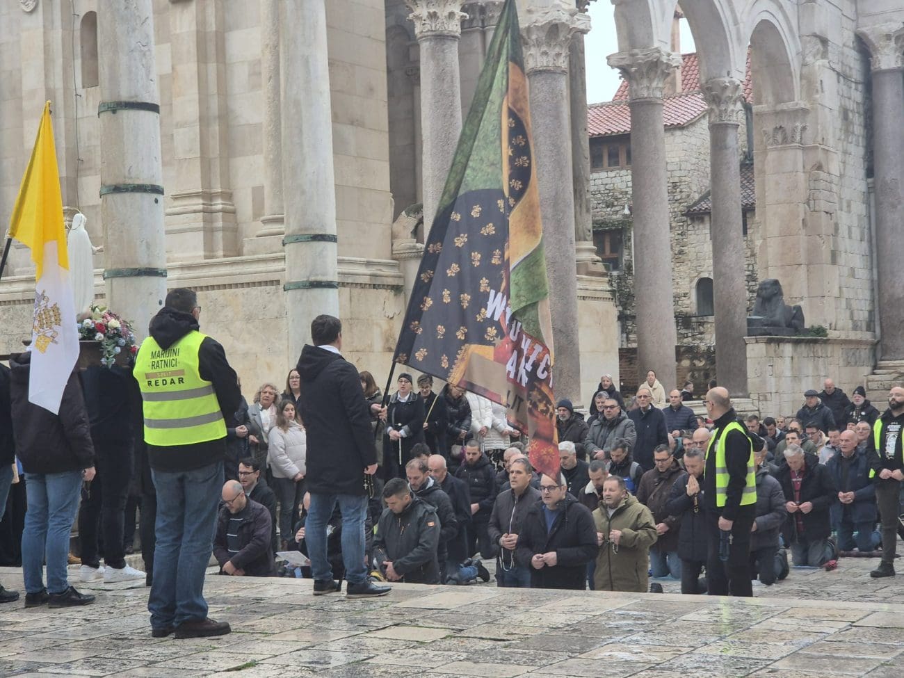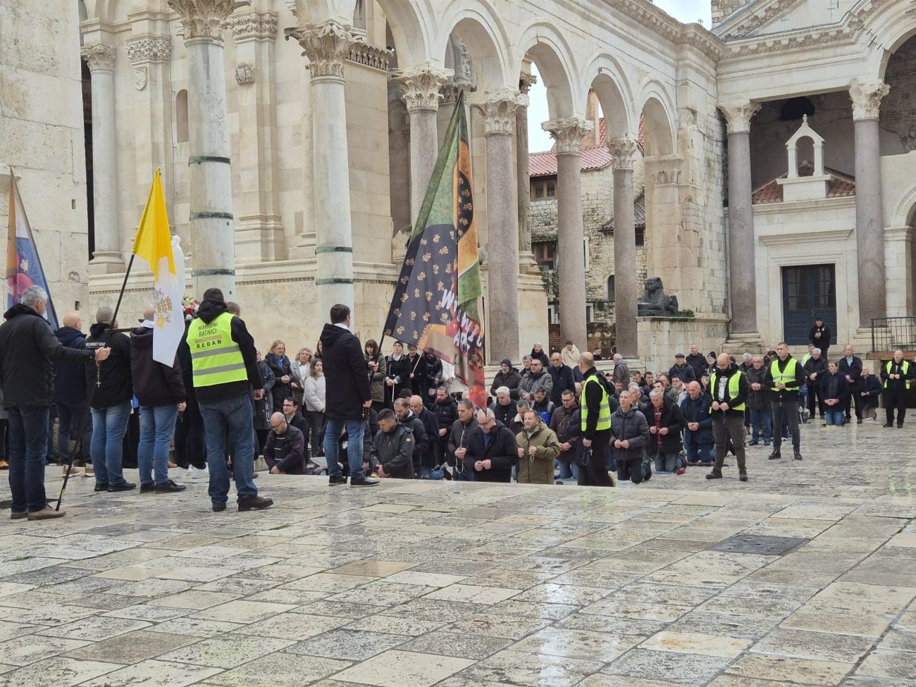 Kao i svake prve subote u mjesecu, Peristil je jutros bio mjesto molitvenog okupljanja. Točno u 8:30 započela je polusatna molitva, a za razliku od nekih ranijih susreta, ovoga puta sve je proteklo mirno, bez ikakvih incidenata ili prosvjednih reakcija.