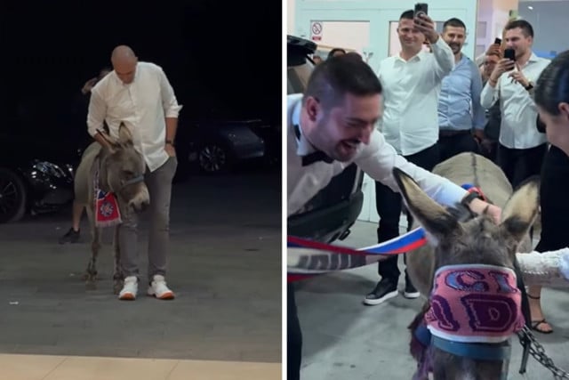 Reakcija nije izostala jer mlada nije mogla vjerovati što se događa dok je gledala kako njihov prijatelj dovodi životinju pred dvoranu. Mladoženjin susret s neobičnim “gostom” dodatno je obilježila pjesma pokojnog Vinka Coce “Kad umrem umotan u bilo”, što je cijelom trenutku dalo posebno navijačko obilježje.