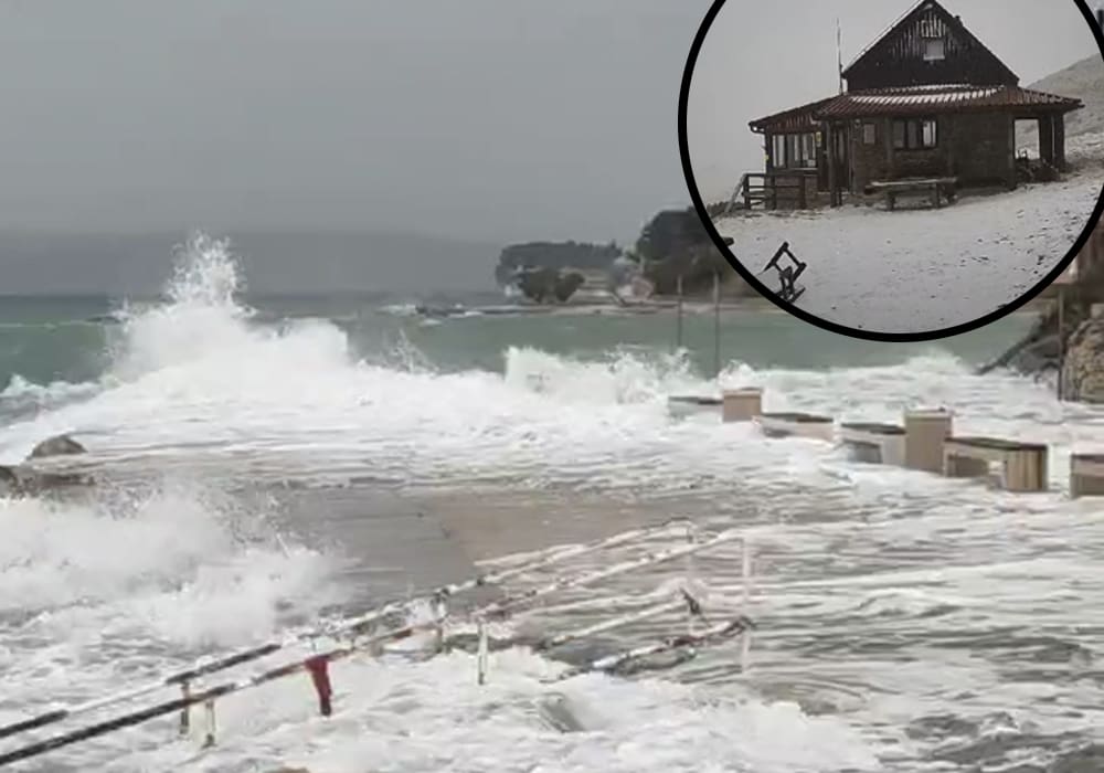 Zbog jakog juga koje od jutra ne posustaje, obalni pojas splitske Zente poplavljen je morem koje su dizali valovi visoki oko 2.5 metra. Udari vjetra dosežu 90 kilometara na sat.