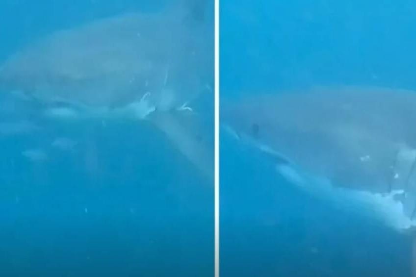 “Bijeli! Bijeli!”, čli su se uznemireni povici na snimci, a posebno je upečatljiv prizor kad je ronioc zaronio dok je velika bijela psina plivala u neposrednoj blizini.