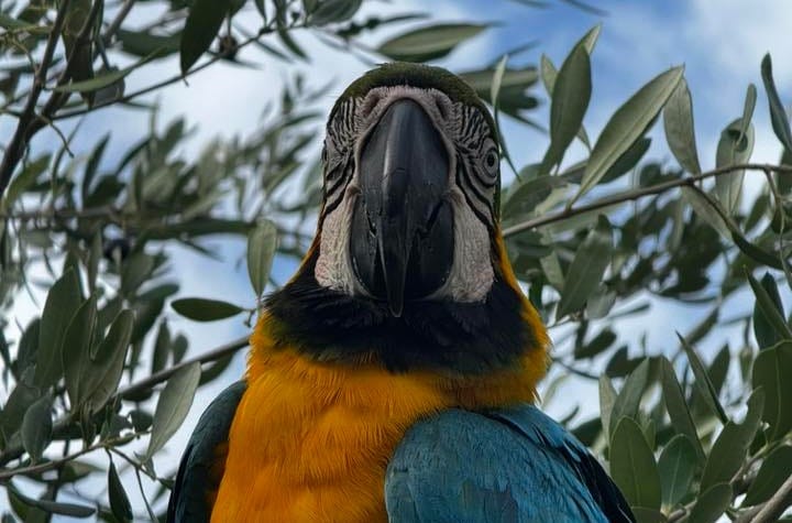 KAŠTEL ŠTAFILIĆ – Papiga ara doletjela je danas u maslinik u Kaštel Štafiliću i kako se čini, pomaže ljudima “brati” masline ili ih bar zabavljati dok to rade.