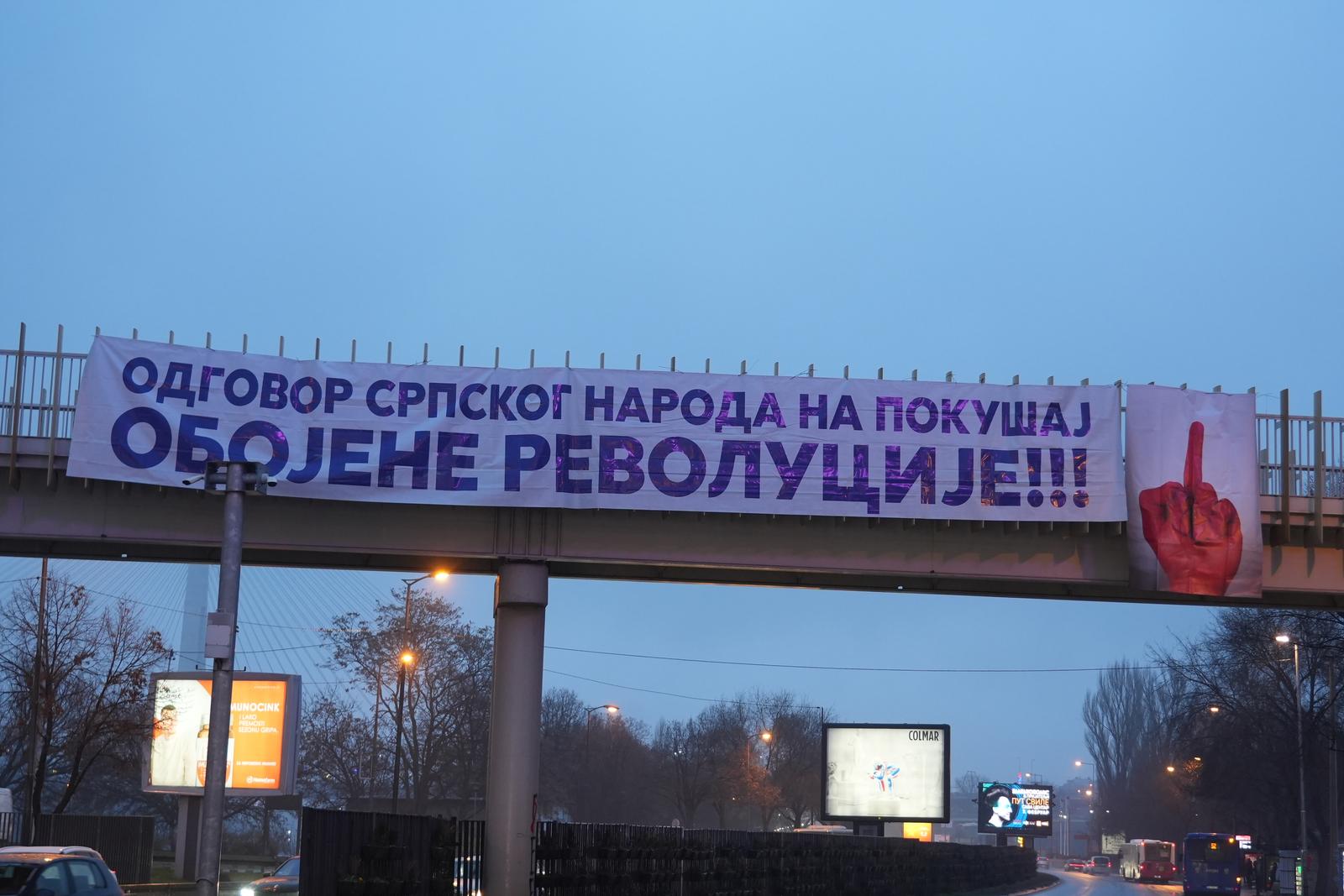 Grafiti su se prvo pojavili u Beogradu, pod okriljem noći na zgradama fakulteta, zidovima i dvorištima škola, a iznad autoceste koja prolazi kroz Beograd, uz simbol srednjeg prsta, izvješena su dva velika transparenta s porukom “Odgovor srpskog naroda na pokušaj obojene revolucije“.